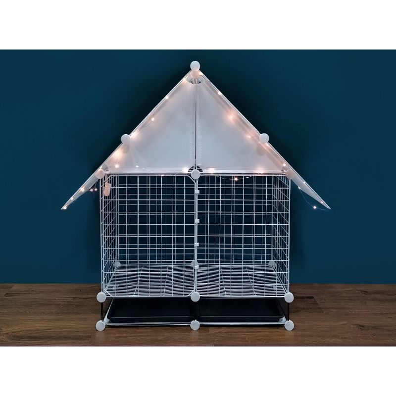 AaPet Bungalow House is designed to provide your Furkids a getaway home with style. It is made of safe and sturdy epoxy-coated metal wiring, built for lasting strength and durability. It is easy to set up with a removable, washable plastic pan for easy clean-up. Lighting up when the night falls create a cosy and welcoming atmosphere to relax in the bungalow house.