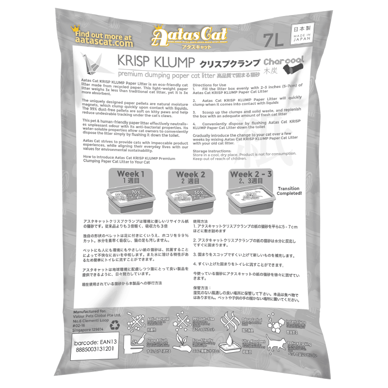 HomeCatsLitter NecessitiesLitter Aatas Cat Krisp Klump Paper Cat Litter Charcoal 7L