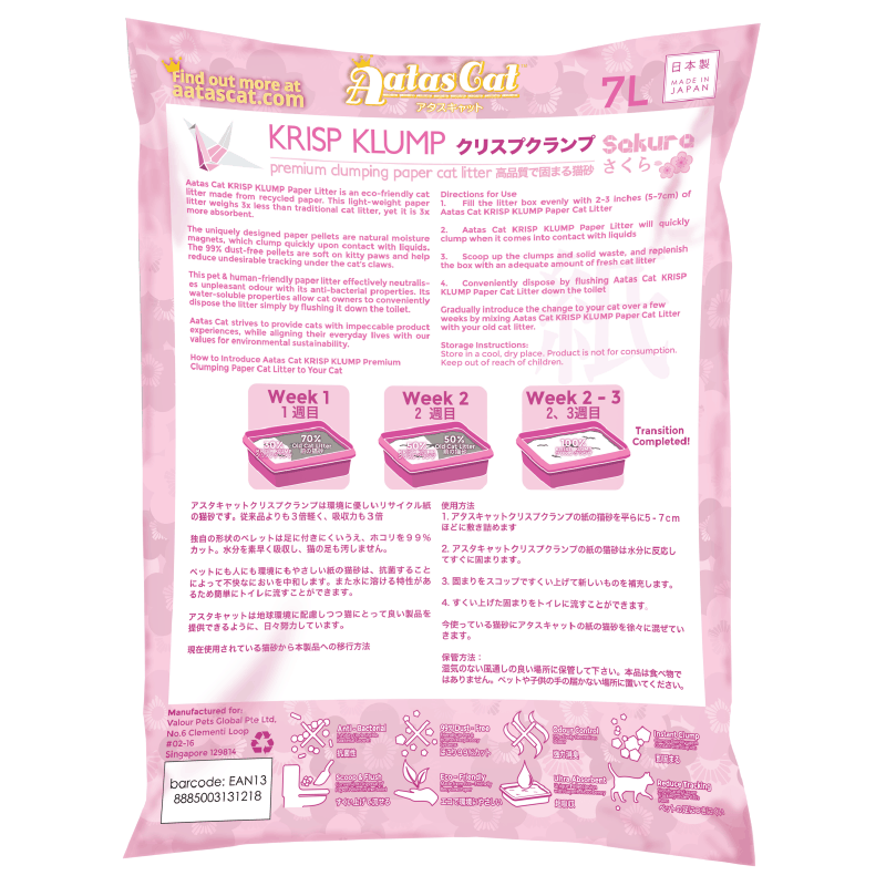HomeCatsLitter NecessitiesLitter Aatas Cat Krisp Klump Paper Cat Litter Sakura 7L