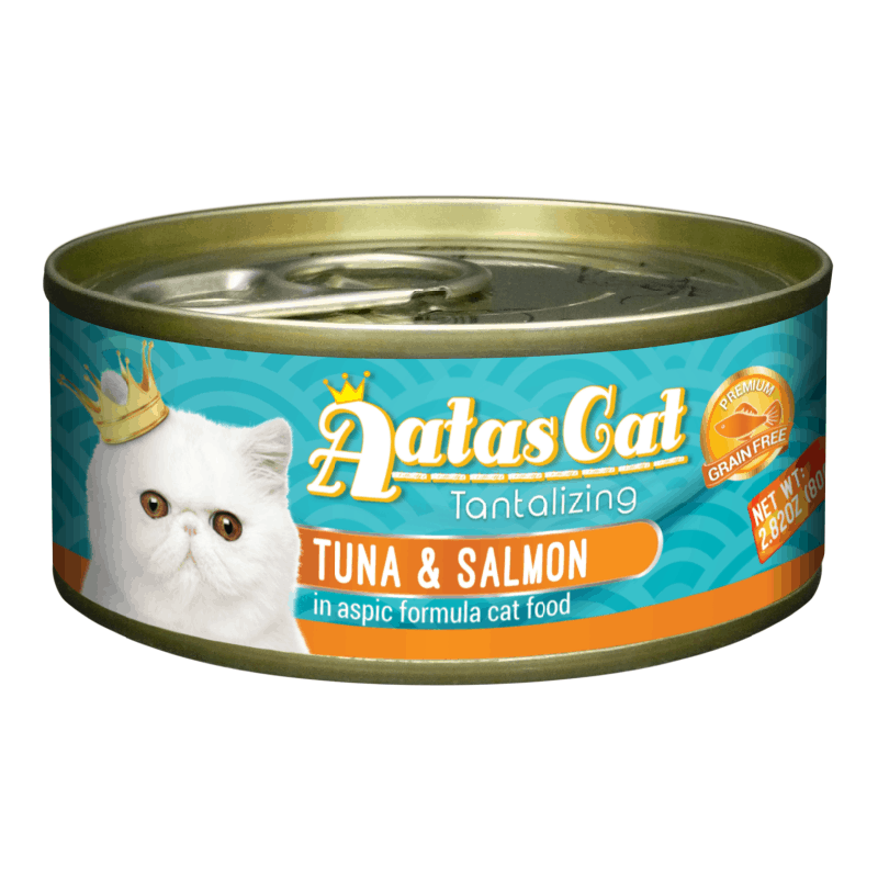 Aatas Cat canned food is a great way to introduce variety to your cat’s diet, in addition to providing an alternate source of water for healthy hydration! A perfect blend of tantalizing wild caught Tuna with succulent Salmon, cooked and simmered in delicious savory aspic. Savor the delectable freshness of Tuna, caught in an environmental-friendly way, and topped with shreds of slow-cooked Salmon.