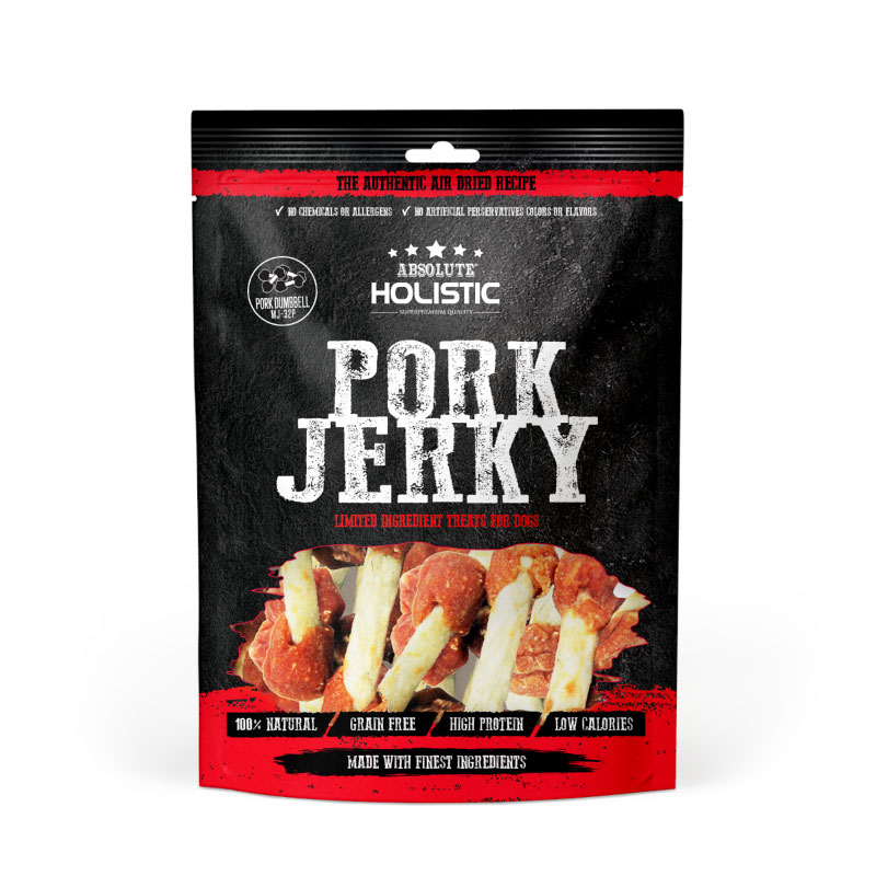 Absolute Holistic’s Pork Dumbbell is a tasty dog treat. Made with pork meat and munchy stick, this treat is crunchy and satisfying. This treat is also free of any chicken or chicken by-products so it is suitable for chicken sensitive dogs. These jerky treats are made with lean cuts of wholesome meats, slowly flame-grilled to lock in the rich flavours and authentic aromas. They are also made in small batches and oven-dried to maximise the uniquely moist texture. It is also 100% grain-free and does not contain any chemicals, allergens, artificial flavours, colours or preservatives. The slightly smoky flavour in the treats will have your pet reaching into the bag for another piece.