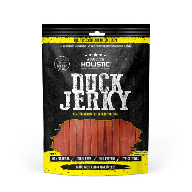 You know your dog will love this treat, just look at how much he is savouring it till the very last bite. Absolute Holistic Grain-Free Duck Loin Strip is a tasty dog treat. Made with real duck meat and sweet potato, this is a great snack for any time of the day. This treat is also free of any chicken or chicken by-products so it is suitable for chicken sensitive dogs. These jerky treats are made with lean cuts of wholesome meats, slowly flame-grilled to lock in the rich flavours and authentic aromas. They are also made in small batches and oven-dried to maximise the uniquely moist texture. It is also 100% grain-free and does not contain any chemicals, allergens, artificial flavours, colours or preservatives. The slightly smoky flavour in the treats will have your dog reaching into the bag for another piece. Mouth-watering, satisfying and astonishingly tender jerky will go far beyond your expectations, you’ll never settle for another jerky again.