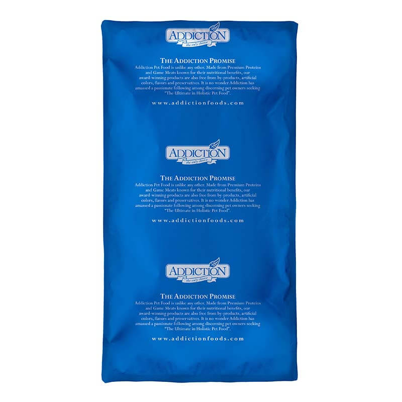 High in omega-3 fatty acids and natural antioxidants, Addiction Salmon Bleu is a hypoallergenic diet with an optimal balance of essential nutrients, including taurine for your dog’s heart health. Addiction Salmon Bleu makes for a delightful gourmet meal and ideal for dogs of all life stages. Addiction Dog Food is delicious enough to be called “Addiction”!