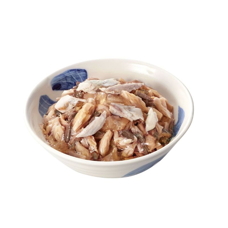 Fish (Shellfish, Tuna, horse mackerel, etc), Lactosucrose, Thickening agents, Seasoning, Vitamin E.
