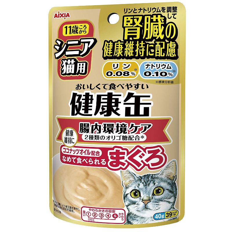 It is important to pay attention to your cat’s diet and physical health so that your cat can live a long and healthy life. Our “Kenko-Can Pouches for Senior Cats” series contains a controlled level of phosphorus and sodium which help to support your cat’s kidney functions. Medium chain fatty acid which is present in coconut oil used in Kenko-Can pouches easily converts to energy when consumed. Senior cats that are unable to chew well can ingest our food paste simply by licking. Using kenko-can will surely benefit your cat’s health.