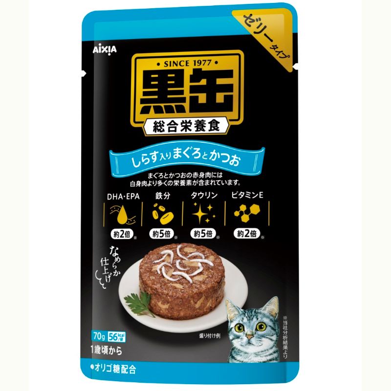 A complete diet of mixture of maguro (tuna) & katsuo (skipjack tuna) dark meat (high in DHA and bioavailable iron) topped with white meat from maguro. This is a diet rich in vitamins & minerals, including taurine. Ideal for pregnant and weak cats.