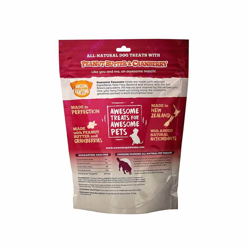 Your pal can now enjoy the biggest twist on an all-time classic! Awesome Pawsomeâ„¢ Peanut Butter & Cranberry is made with real peanut butter and cranberries, mixed with aromatic botanical extracts of green tea, rosemary, and spearmint for a more appetizing pet treat.
