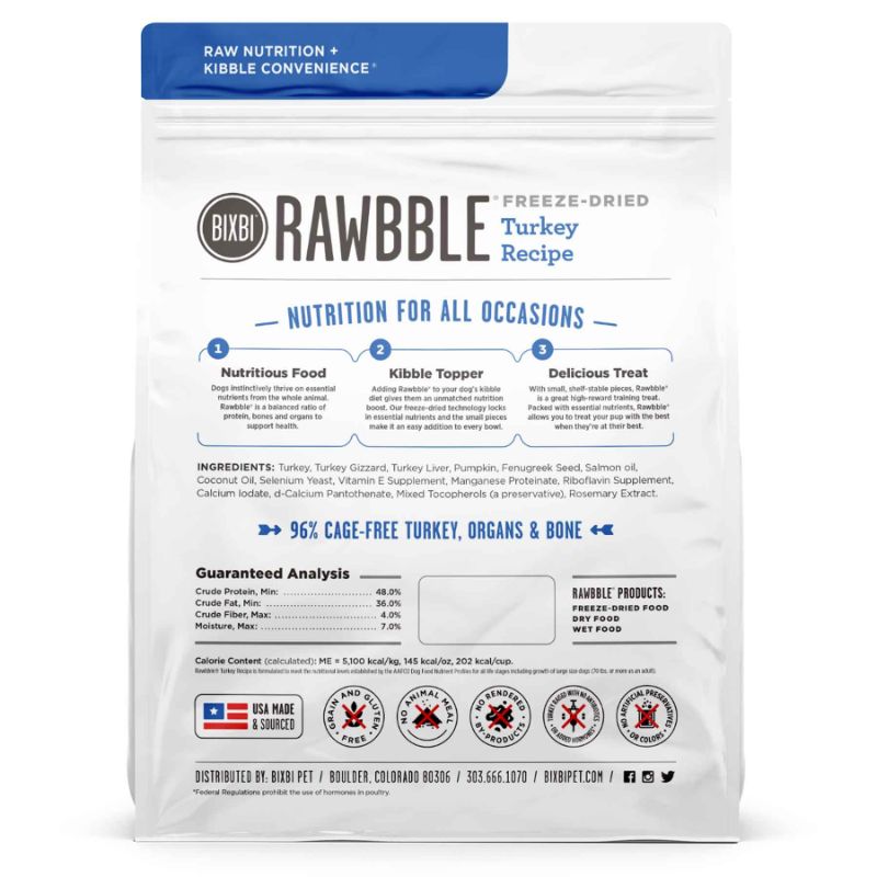 RAWBBLE® uses freeze-dried technology to lock more naturally sourced essential nutrients into every bite. Packaged in resealable bags, the product is easily rehydrated and the small pieces make feeding, topping or treating easy and convenient.