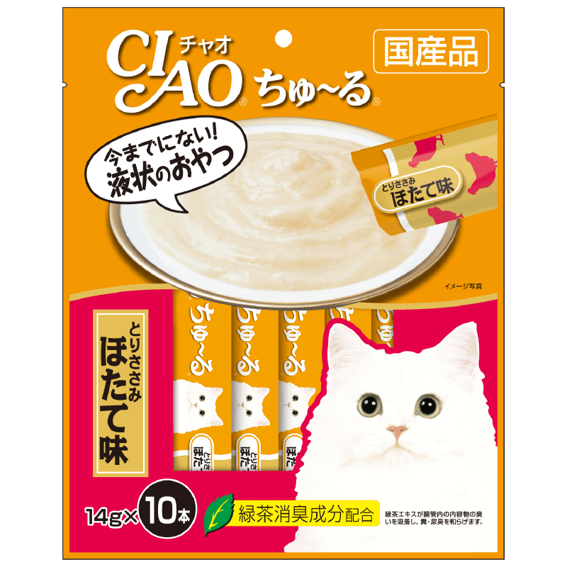 HomeCatsFoodWet Food CIAO Churu Chicken Fillet Scallop Flavour 14g x 10 sachets