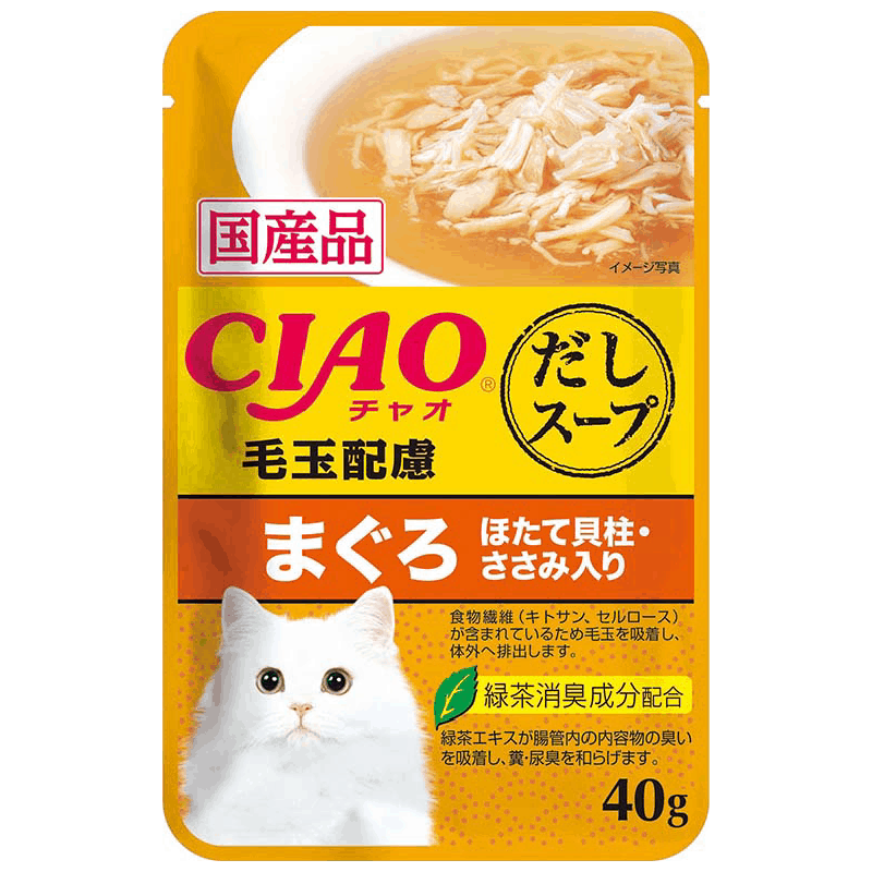 CIAO Clear Soup Pouch – Chicken Fillet & Maguro Topping Scallop with Fiber 40g