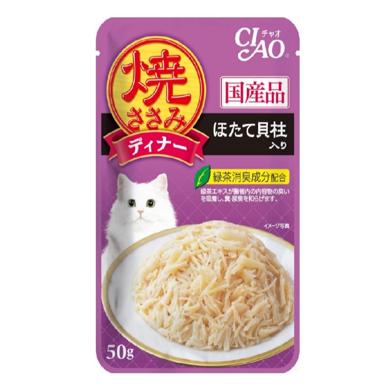 HomeCatsFoodWet Food CIAO Grilled Pouch Grilled Chicken Flakes with Scallop in Jelly Wet Food for Cats 50g
