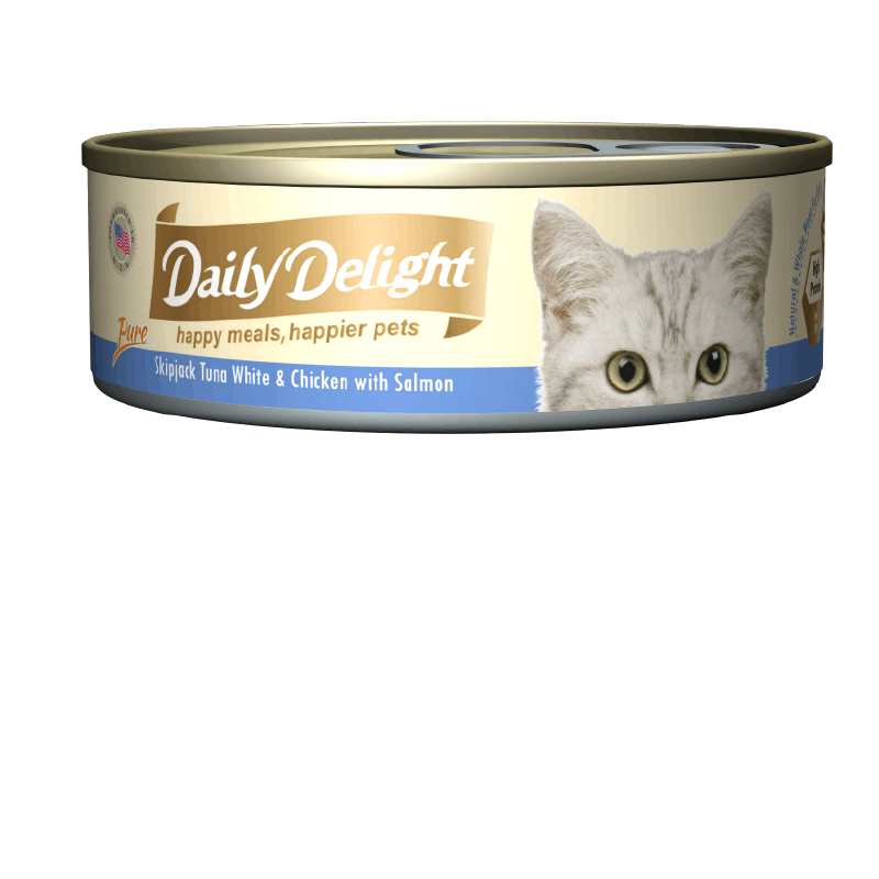 Delight your cat with a can of Daily Delight Pure at every mealtime. Each Pure recipe features delicate cuts of Skipjack Tuna and Chicken for an unforgettable flavour burst! Each recipe is packed with a novel ingredient, bringing additional functional benefits!