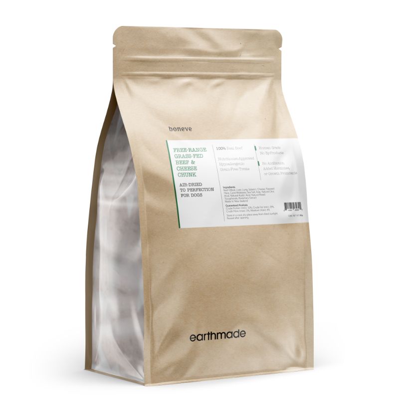 Earthmade air-dried dog treats are made with 100% free-range and grass fed livestock in New Zealand. These treats are hypoallergenic which is suitable for dogs with sensitive skin. 100% pure without additives and preservatives makes it a natural, healthy source of protein and iron supplement for dogs.