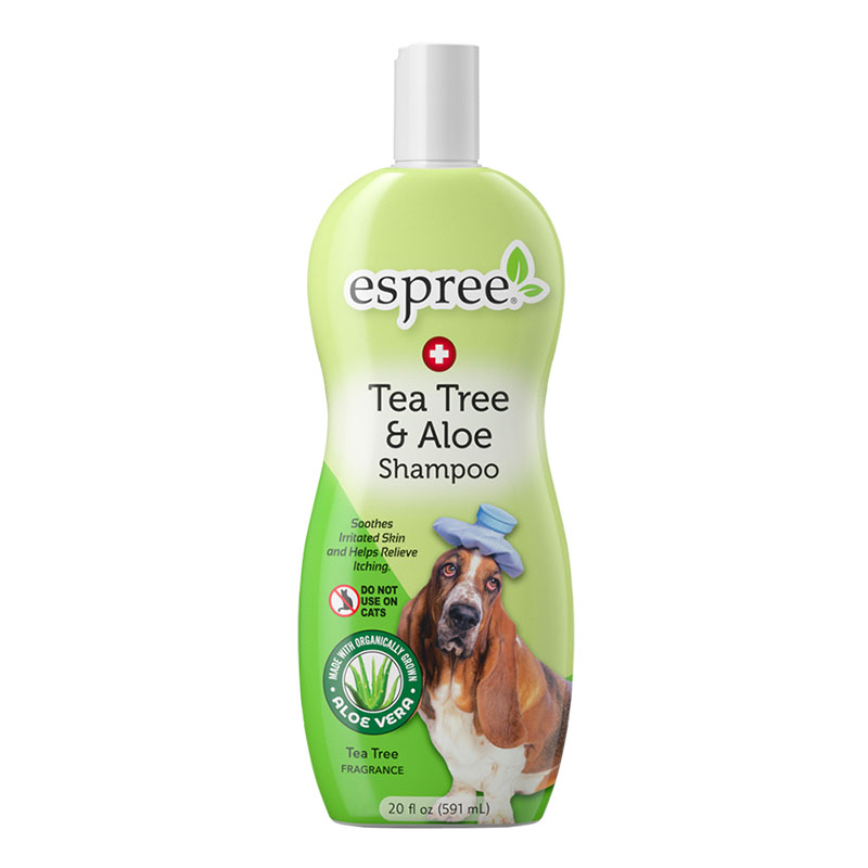 Espree’s Tea Tree & Aloe Shampoo is formulated with organic aloe vera to support healthy skin. Tea tree oil and aloe vera aid in the relief of multiple skin issues including flea bites, hot spots, razor burn, and dry skin. Professional groomer recommended. Tea Tree fragrance. For best results, use with Espree Tea Tree & Aloe Conditioner and Tea Tree & Aloe Spray.
