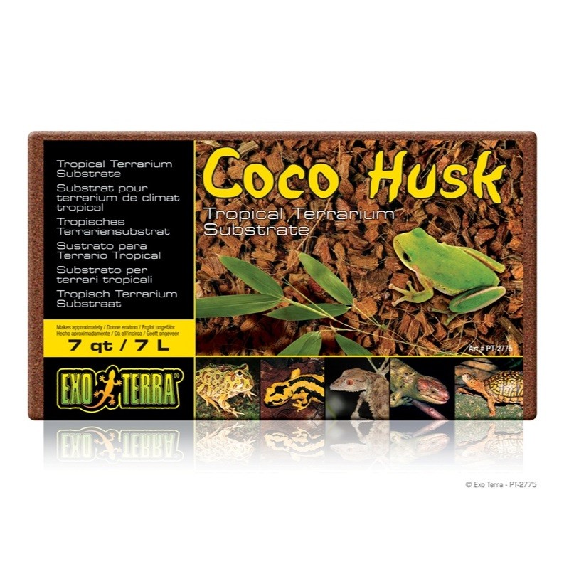 Exo Terra Coco Husk is made from compressed coconut husk from the plantations of tropical Asia. This ecological substrate is ideal for increasing humidity in the terrarium and is totally safe for frogs, salamanders and burrowing or digging animals.