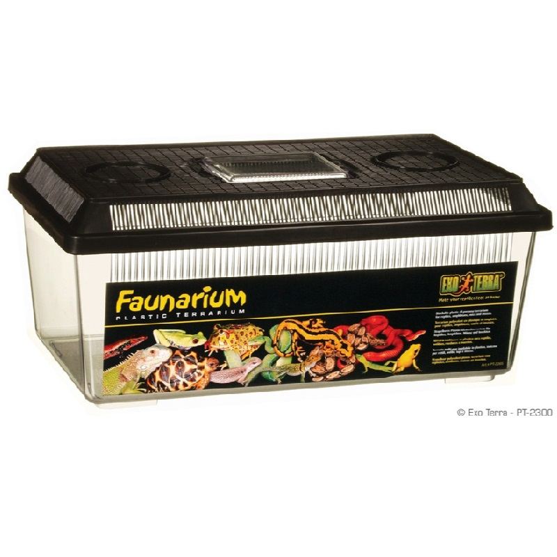 The Exo Terra Faunarium is an easy to use stackable plastic all-purpose terrarium for reptiles, amphibians, mice and arachnids and insects.