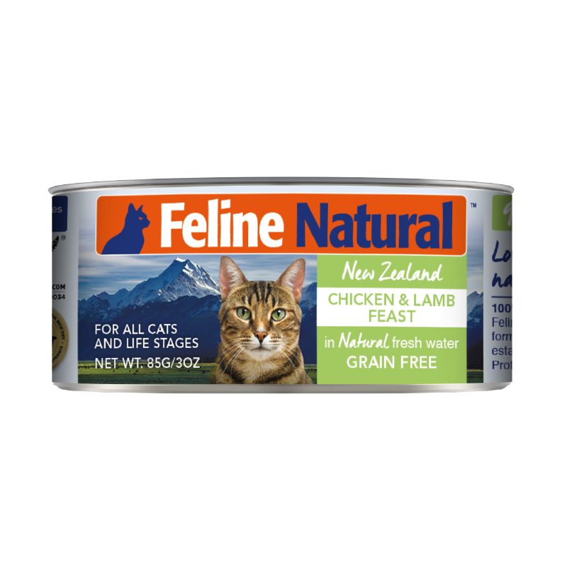 Feline Natural premium canned cat food contains all the goodness of our existing product ranges in a convenient, ready to use can. Our canned cat food is FREE from all gelling agents, the only thing we add is Natural Fresh New Zealand Water. Simply pop the top and drop the contents out with ease and no mess. Packed with New Zealand wholefood ingredients and selected essential vitamins, minerals and oils – the perfect balanced diet or ideal nutrient rich high meat boost to add to a cats existing diet.