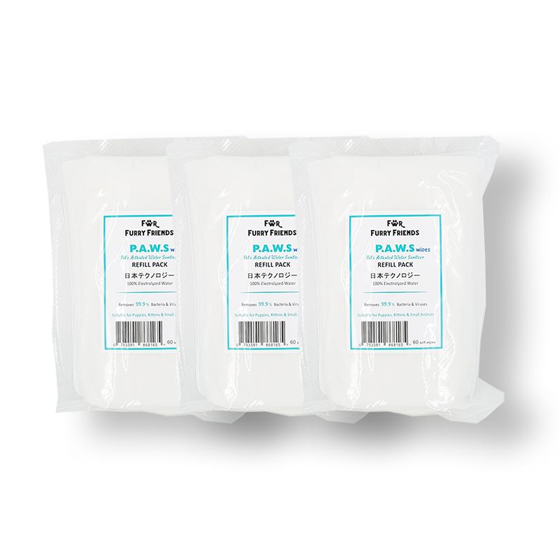 Remove dust and dirt with ease and safe to use for all pets without a trace of Chemical, Alcohol, Toxin and Surfactant! P.A.W.S wipes contain 100% Electrolyzed Water, without distilled water content that may cause side effects such as bacterial infection and yeast infection. It is suitable for all type of pets including kittens, puppies, hamster, rabbit and more.