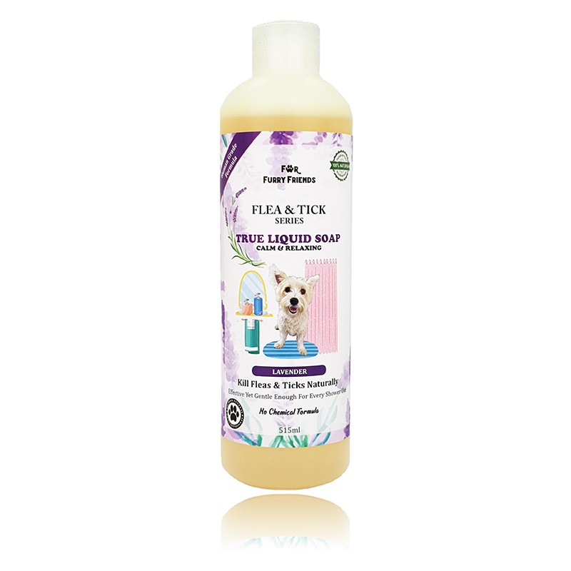 For Furry Friends’ True Liquid Soap kills flea and ticks effectively and naturally by effectively removing their protective wax layer, causing them to drown and die without using any form of chemicals (e.g. pesticides).