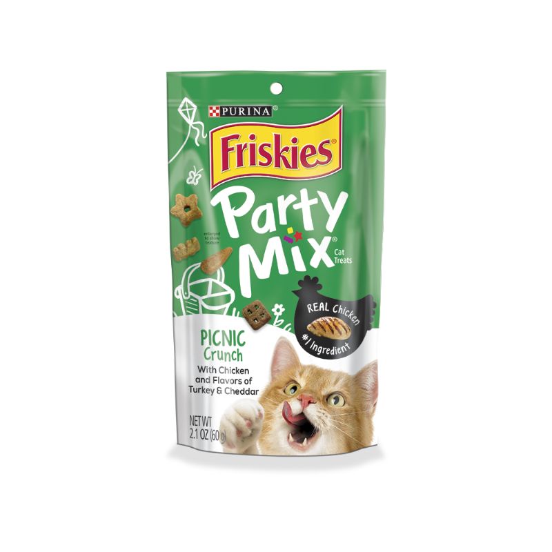 FRISKIES® Party Mix™ provides 100% complete and balanced nutrition for adult cats as a treat; so that it will not dilute the nutritional value of your cat’s regular maintenance diet.