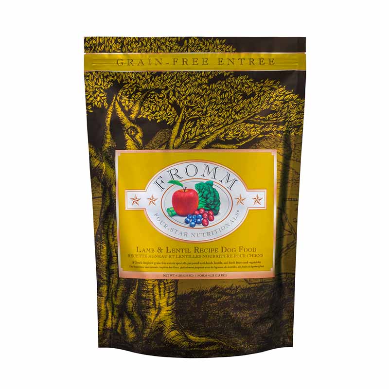 Grain-free gourmet Greek cuisine prepared in small batches with with lamb, lamb meal, lentils, and an assortment of fruits & vegetables. Fromm Four-Star Nutritionals® Lamb & Lentil Recipe Dog Food is formulated to meet the nutritional levels established by the AAFCO Dog Food Nutrient Profiles for all life stages, including growth of large size dogs (70 lb. or more as an adult).