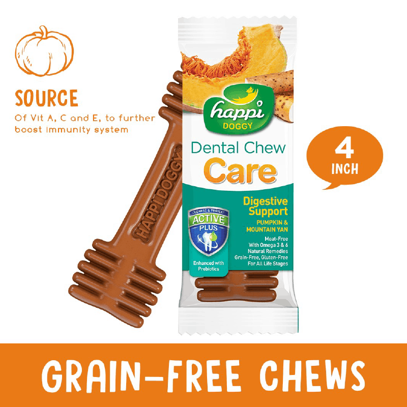 Combining all the best features from Zest®, Happi Doggy Dental Chew Care® is specially formulated to target two common problems faced by dogs – Digestive and Skin & Coat issues. Distilled from essential plant oils, our unique Active+ is an active ingredient that cleanses and protects teeth against bacteria buildup. On top of preventing plaque buildup and removing tartar stains, it relentlessly kills bacteria and eliminates bad breath. With 4 times the brush bristle, brushing becomes 4 times more effective. Infused with EPA, DHA, Pre- and Probiotics, the goodness of natural remedies, vitamins and supplements, our Dental Chew Plus brings major health benefits to support cognitive development, intestinal balance, cellular function, and muscles maintenance.