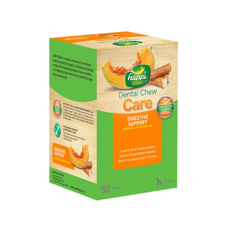 Combining all the best functions from our Zest series, Happi Doggy Hard Dental Chew Care is specifically formulated to aim at common problems faced by dogs. By including novel ingredients like Fennel Grass and Mountain Yam, Hard Dental Chew Care aims to provide daily dog chews with purposeful functionalities and nourishment that clean your dog’s pearly whites effectively at the same time!