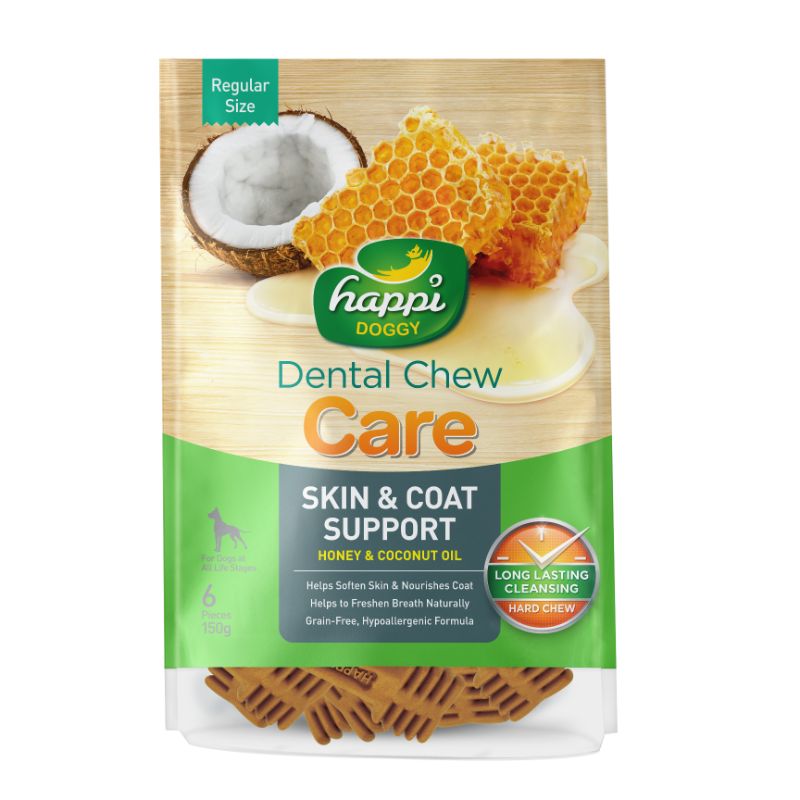 Combining all the best functions from our Zest series, Happi Doggy Hard Dental Chew Care is specifically formulated to aim at common problems faced by dogs. By including novel ingredients like Fennel Grass and Mountain Yam, Hard Dental Chew Care aims to provide daily dog chews with purposeful functionalities and nourishment that clean your dog’s pearly whites effectively at the same time!