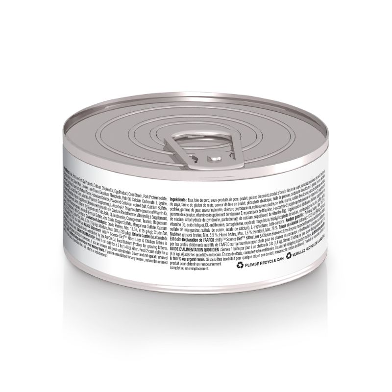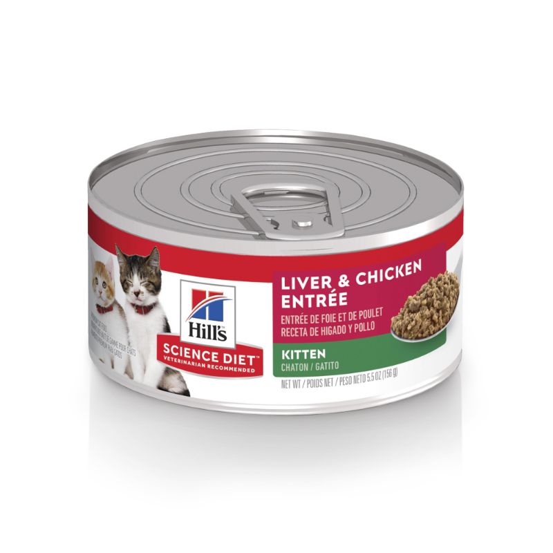 Hill’s® Science Diet® Kitten Liver & Chicken Entrée is formulated to meet nutritional levels established by the AAFCO Cat Food Nutrient Profiles for growing kittens and gestating or lactating adult female cats.