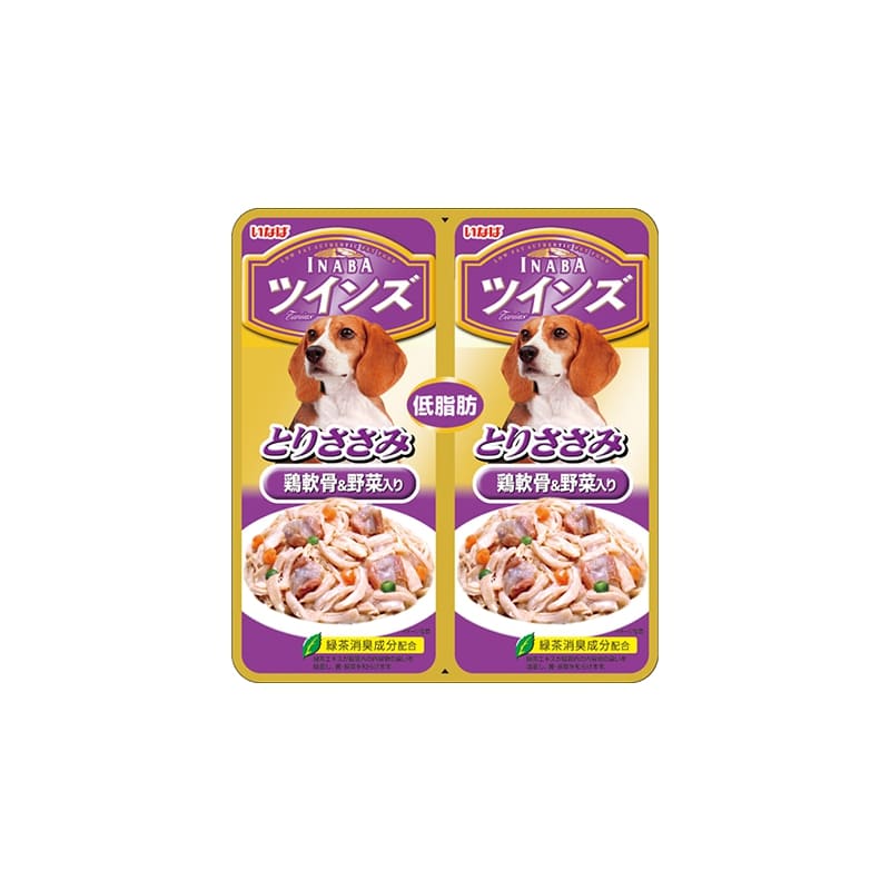[5 FOR $10] Inaba Chicken Fillet with Cartilage & Vegetables in Jelly Twin Pouch Wet Dog Food 2pcs 40g