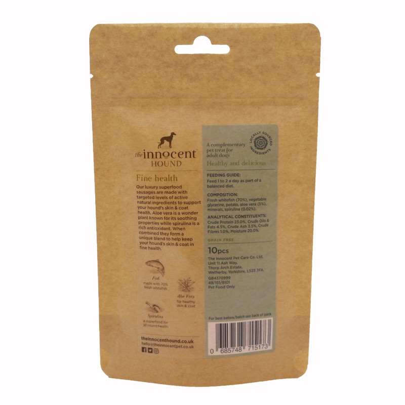 These luxury sausages are made with 70% fresh whitefish and contain the soothing wonder plant, aloe vera, and a sprinkling of spirulina – a natural algae packed full of B vitamins, minerals and amino acids. It is great for helping support a healthy immune system and overall wellbeing. ​Made with a single protein – only fish goes into these sausages.
