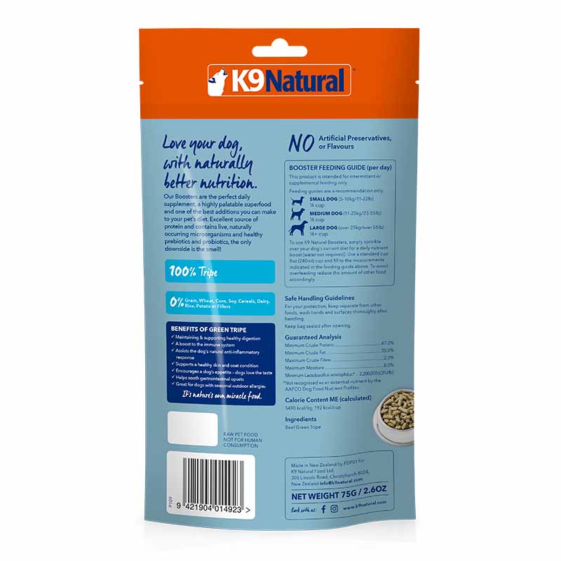 K9 Natural Toppers are all the goodness of our freeze dried range in a smaller, more convenient pack. Excellent source of protein and contains live, naturally occurring microorganisms and healthy prebiotics and probiotics, the only downside is the smell!