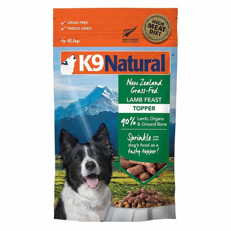 K9 Natural Toppers are all the goodness of our freeze dried range in a smaller, more convenient pack. Like all K9 Natural food, they’re packed with New Zealand wholefood ingredients. Developed to simply sprinkle over your dog’s existing diet, whatever that may be, Toppers offer a nutrient dense high meat boost and are a great way to entice picky eaters.