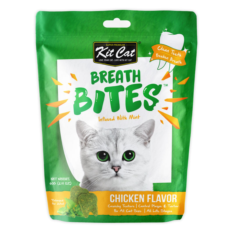 Cleaning your cat’s teeth has never been easier or more delicious with Kit Cat Breath Bites. Bursting with the tasty flavors your cat will love, these crunchy treats are specially designed to help keep your cat’s teeth clean by reducing plaque and tartar when fed daily.