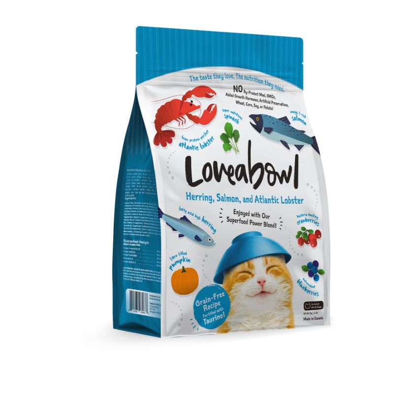 Loveabowl is made in Canada with locally and freshly sourced ingredients. Packed with exotic ingredients like snow crab and Atlantic lobster, our food is free of added growth hormones, GMOs and gluten. A power blend of 6 super foods which includes cranberries and peppermint adds to the nutritional value and has natural benefits for your fur kids. Our recipes are grain-free and fortified with Taurine for healthy vision, good digestion and robust heart function.