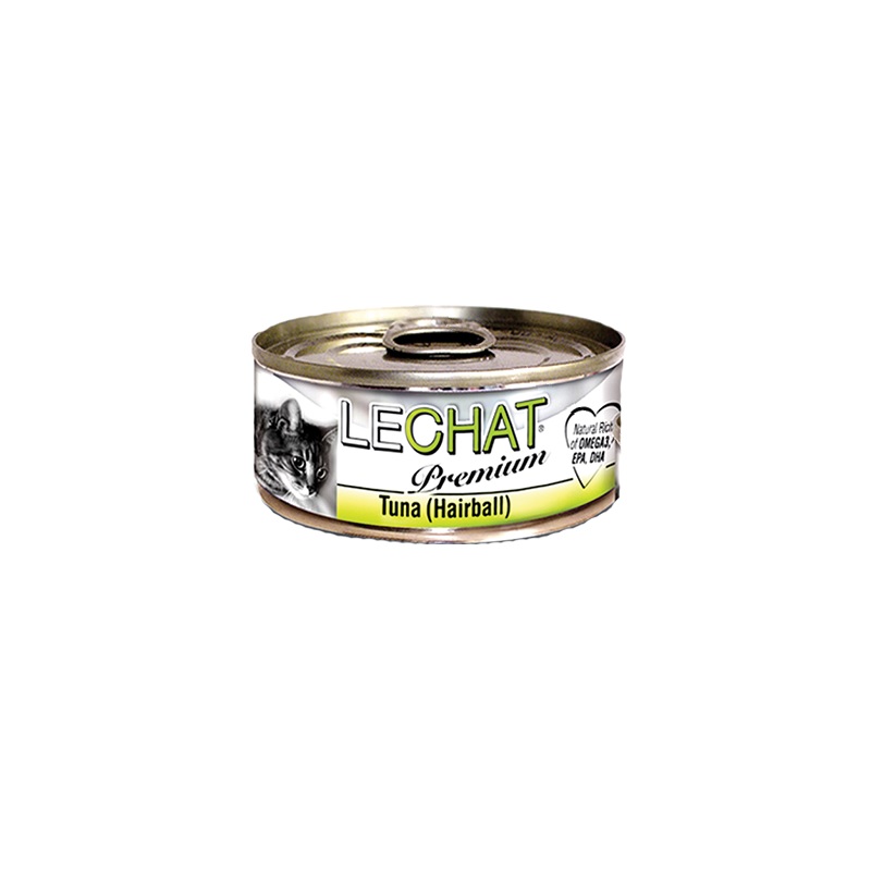 LeChat Premium Wet Food for Cats consists of naturally selected tuna meat and toppings such as chicken, kanikama (crabmeat), salmon and shirasu (whitebait) in jelly, without additional preservatives and colorants, perfect hairball control for cats.