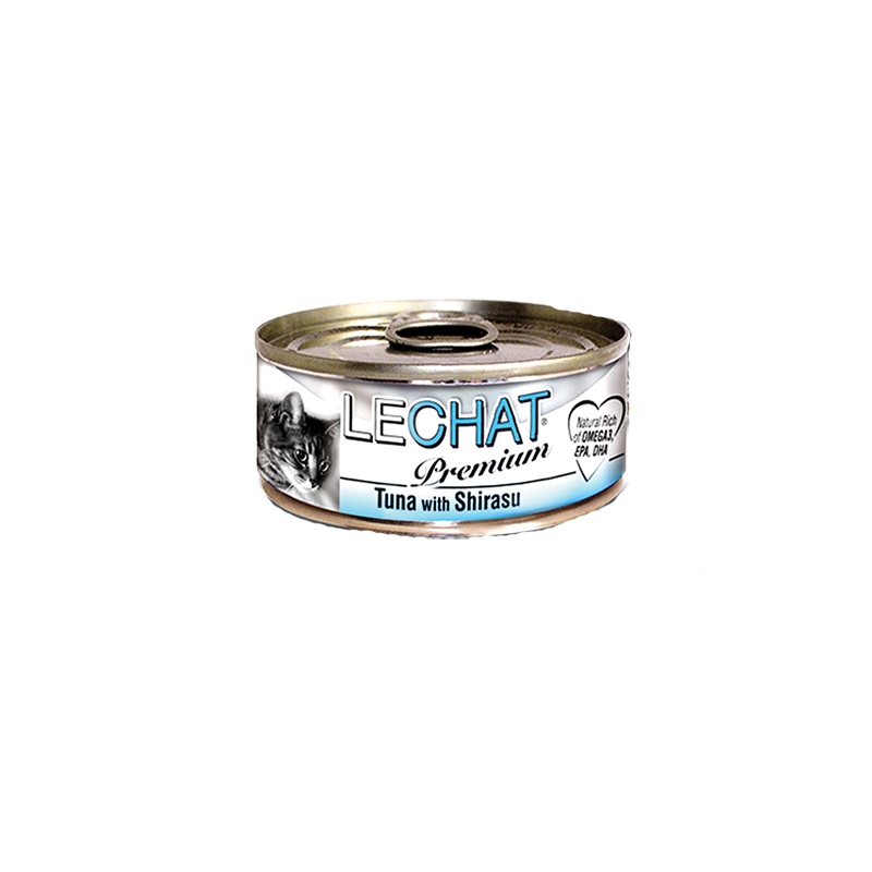 LeChat Premium Wet Food for Cats consists of naturally selected tuna meat and toppings such as chicken, kanikama (crabmeat), salmon and shirasu (whitebait) in jelly, without additional preservatives and colorants, perfect hairball control for cats.