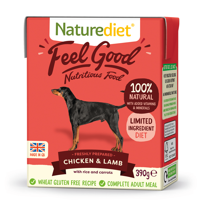 A mighty meaty meal, irresistible to dogs. Premium quality cuts of chicken and lamb served with carrots and rice, this 100% natural meal is complete and balanced to provide essential nourishment for optimum canine health and well-being. A naturally nourishing, gently steam cooked meal that’s suitable for all breeds of adult and senior dogs, as well as puppies over 6 months old. Made with ethically sourced, British ingredients and completely free from artificial nasties.