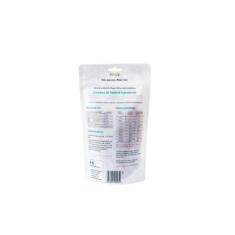 NZ grass fed lamb treats to support your dogs dental health. With cranberry extract to help prevent plaque build up on teeth and gums to maintain good dental health. Contains Omega 3&6 oils to maintain healthy skin and coat condition.