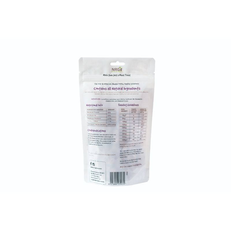 Active Dog Treats for Skin and Coat conditions (for Dogs and Pups) are New Zealand grass fed lamb treats to support your dogs skin and coat condition. With zinc and copper to support skin integrity and strength and improve healing of dry, itchy, flaky skin. Contains Omega 3 & 6 oils to maintain healthy skin and coat condition.