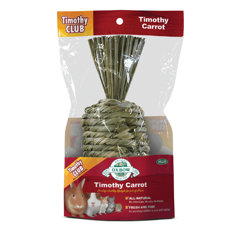 Fun, enriching, and ready to eat! The Timothy Carrot is the perfect accessory for any herbivore in your life. Every Timothy Carrot is hand-woven from 100% pure, premium Timothy hay. The Timothy Carrot may not have come from the garden, but your rabbit, guinea pig, or chinchilla is sure to love it just as much.