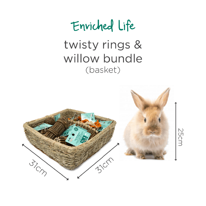 Oxbow Enriched Life Twisty Rings & Willow Bundle Basket comes in a bundle of 6 twisty rings, 6 willow bundle and 1 wine basket. It helps to support your pet’s instinctual behaviors such as exploring, playing, hiding, and chewing. Oxbow Enriched Life is designed with these natural behaviors in mind and is constructed from 100% pet-safe materials, allowing you to nurture your pet’s mind and body in safe and fun ways every day.