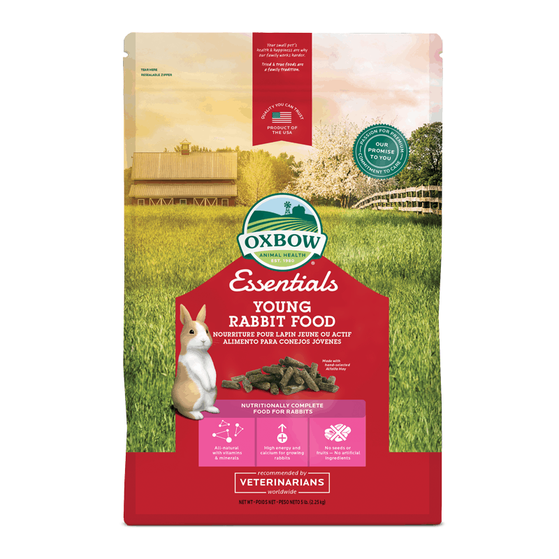 Oxbow’s Essentials – Young Rabbit Food is formulated to meet the specific nutritional needs of young rabbits and help them thrive. This complete and balanced young rabbit food contains Alfalfa hay to provide optimal protein and fiber for healthy digestion. We add wholesome ingredients and vital nutrients to support daily function and performance, making Essentials – Young Rabbit Food the ideal diet for growing, active pregnant or nursing rabbits.