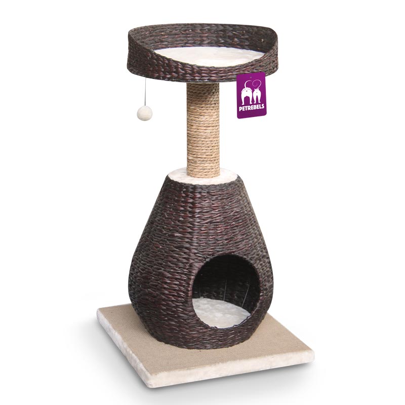 Caribbean feelings come up wherever PETREBELS NATURAL ECO LOVERS appear. The beach and the islands of Curacao and Grenada are not far away. CARIBBEAN BEACH 89 combines natural style with hot rhythms. The interaction of natural water hyacinth leaves (Typhia), robust jute fabric structure and soft plush emboss his typical style. CARIBBEAN BEACH 89 has a stable base plate of 4 cm thickness, a cozy box in shape of a drop and a sofa on the top. Cave and sofa are both equipped with extra an extra soft filling. A plush ball fixed at an elastic rope, provides the necessary variety and for entertainment. CARIBBEAN BEACH 89 is ideal for small and normal-sized cats.