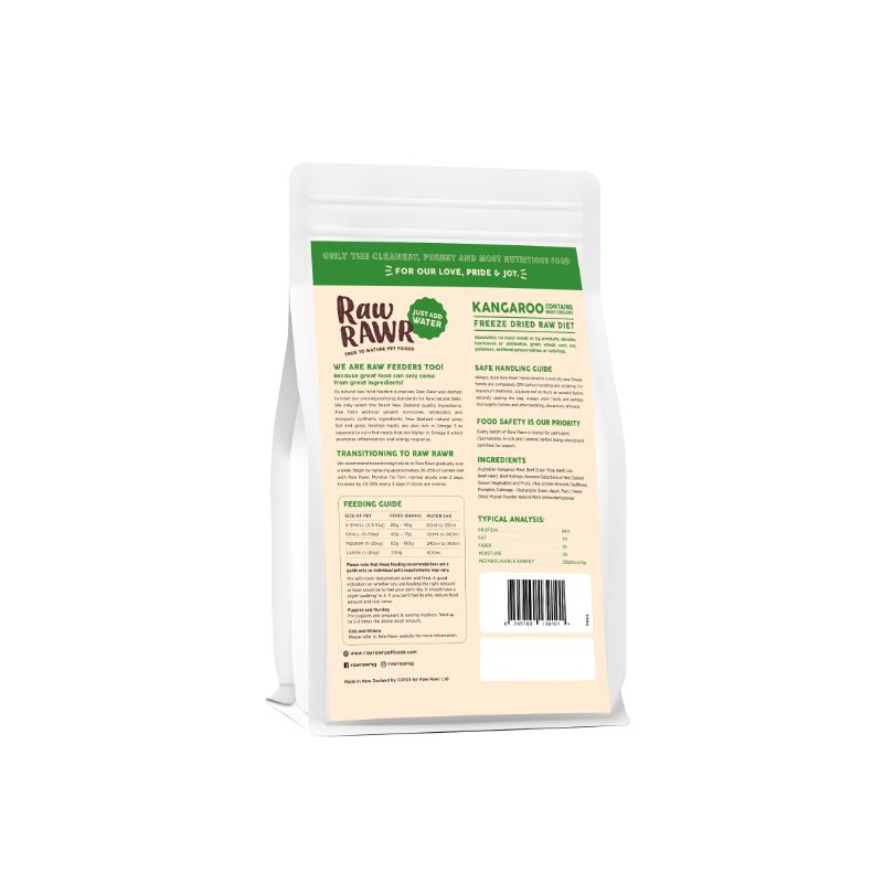 Australian Kangaroo Meat, Beef Green Tripe, Beef Liver, Beef Heart, Beef Kidneys, Seasonal Selections of New Zealand Grown Vegetables and Fruits (May contain Broccoli, Cauliflower, Pumpkin, Cabbage, Red and Green Apple, Pear), Freeze Dried Mussel Powder, Natural Plant Antioxidant Powder