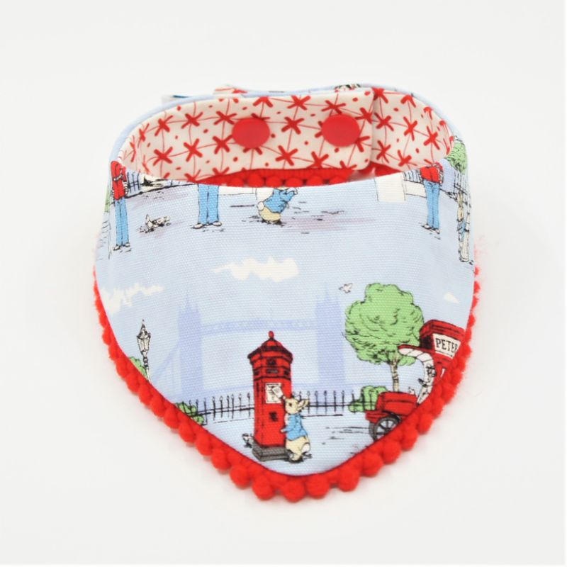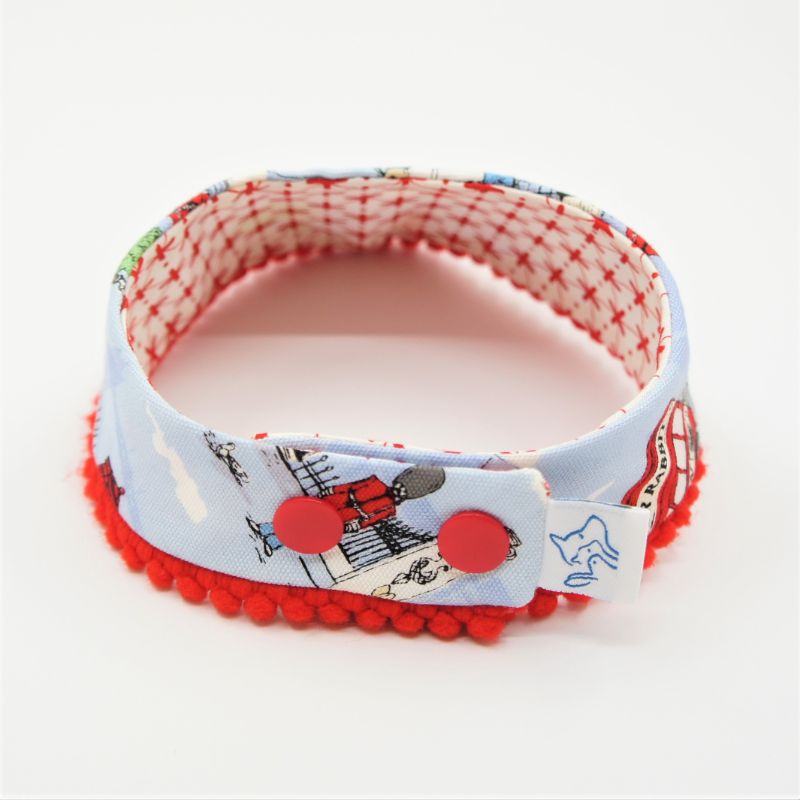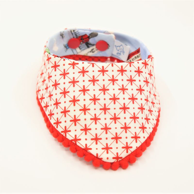 Our Bandana is soft, comfortable and gentle on your pet. Each piece is made made of high quality cotton. The main fabric design is London scenery on pastel Blue background. Red pom pom trim enhances the overall look. The reversible side is red X on white background. The bandana is secured using snap buttons which and adjustable to fit the pet’s neckline. Easy to maintain. If soiled, just hand wash and lightly iron for a new and neat look. Each piece is handmade and unique. Our bandanas can be worn indoor and outdoor. Your pet will look stylish on all occassions.