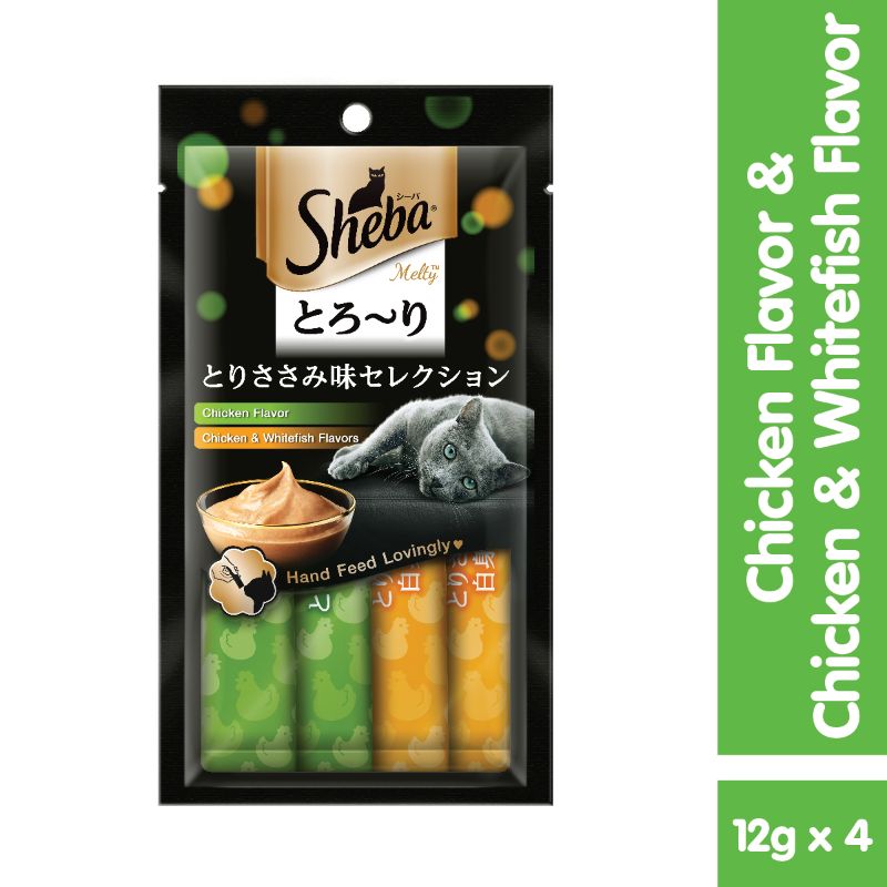 HomeCatsFood Sheba Melty Chicken and Chicken & Whitefish Creamy Cat Treats 12g x 4