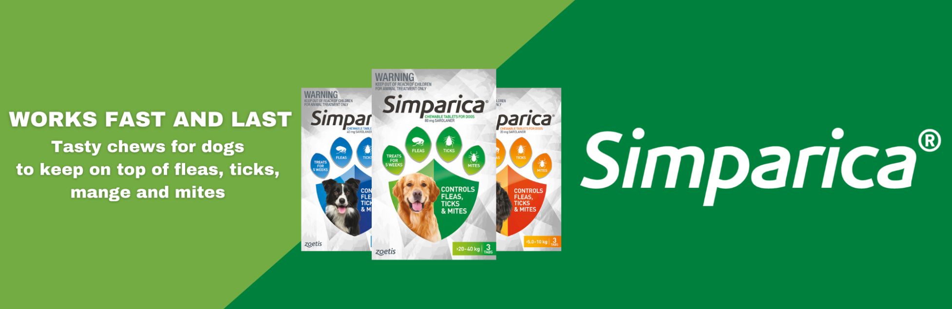 Determined to develop superior protection, Simparica created a treatment that can protect your pets from fleas and ticks all month long—without losing its effectiveness at the end of the month. They know there's no time to waste when it comes to protecting our furry friends, so Simparica starts killing fleas and ticks within hours and keeps going strong for up to 35 days.