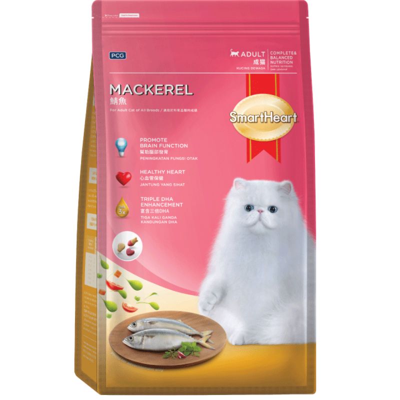 Satisfy your cat’s cravings with SmartHeart Mackerel Adult Dry Cat Food. Featuring the delicious flavors of mackerel your feline friend will love, this food is formulated with a balance of protein and vitamins to provide 100% complete nutrition. DHA and choline deliver the nutrients he needs to enhance his brain and nervous system, while Taurine is supplemented to nourish his eyesight. For even more complete nutrition, added vitamins and minerals help support and maintain a strong and healthy feline