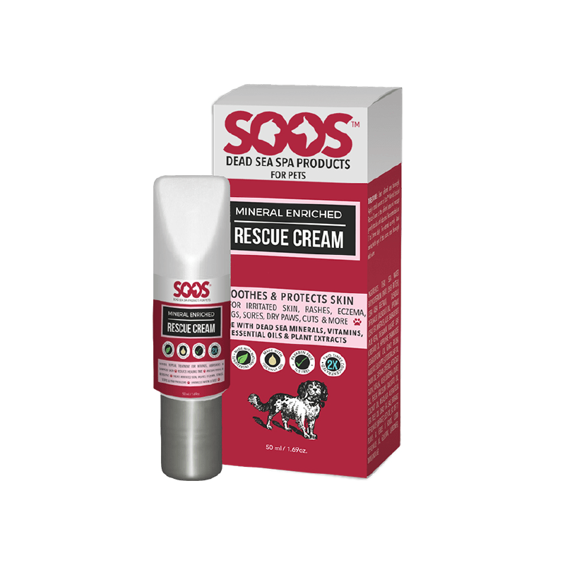 Soosâ„¢ Natural Mineral Enriched Rescue Cream is made with 93 different natural remedies to stop pain, create a protective barrier and prevent infection. Â It absorbs immediately so it’s harmless when licked.